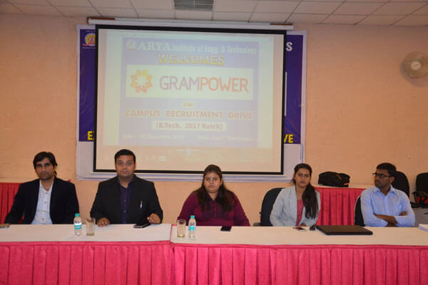Arya College of Engineering & Research Centre conducted an on Campus Drive of Gram Power for the B. Tech