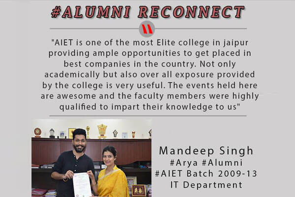 Mandeep Singh, Batch 2009-13, ARYA Alumni AIET from IT Department, is currently working