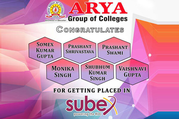 Arya College of Engineering & Research Centre Congratulates the selected students of