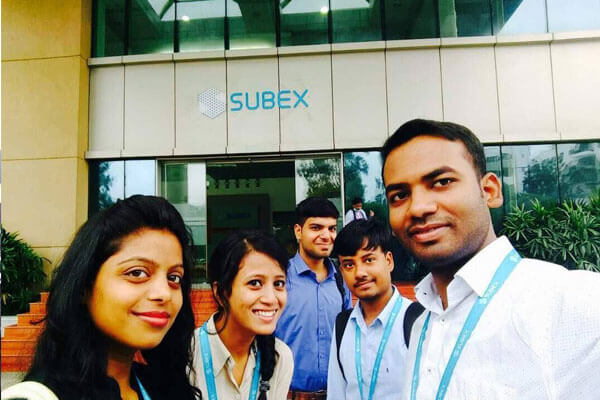 Students on boarding at Subex, Bangalore. A very warm welcome given to our students.