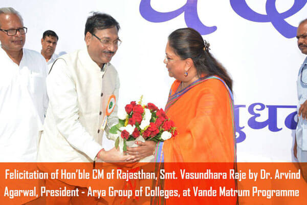 Felicitation of our Beloved CM Hon'able Smt. Vasundhara Raje by the President of Arya Group